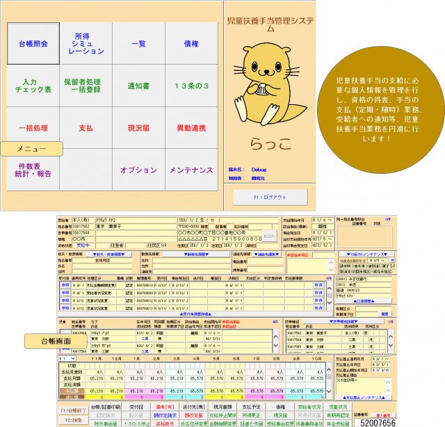 『らっこ』システムでは世帯構成情報(住基・税)を中心に管理します。